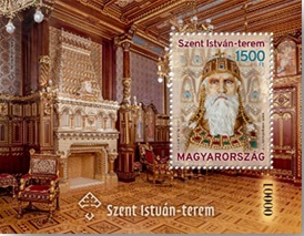 A Magyar Posta alkalmi bélyegblokkon mutatja be a Szent István-termet.