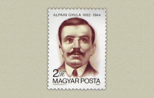 Alpári Gyula (1882-1944) születésének 100. évfordulója alkalmából megjelent bélyegen Alpári Gyula portréja látható.