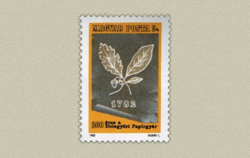 2. ENGLISH - 200 YEARS OF DIOSGYOR PAPER - Order code of the stamp: 1982/019