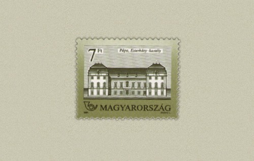 A Kastélyok sorozat új tagjaként megjelent 7,- Ft -os bélyegen, Pápa, Esterházy-kastély látható.